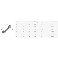 | Modèle | D mm | L mm | SWL Kg | ø Loop mm | Anneau modèle |