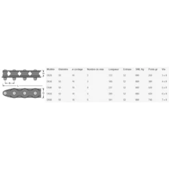 | Modèle | Diamètre | ø cordage | Nombre de réas | Longueur | Entraxe | SWL Kg | Poids gr | Vis |