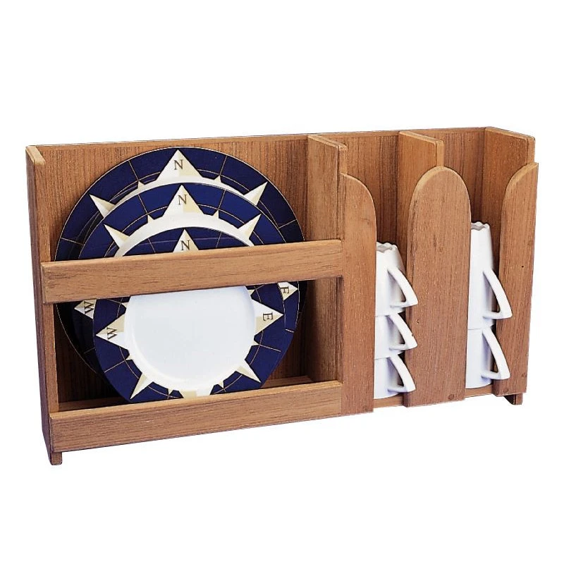 Support Ă vaisselle pour assiettes, tasses ou bouteilles ARC MARINE en bois de teck Ă fixer sur paroi dans la cuisine des bateaux ou camping-cars.