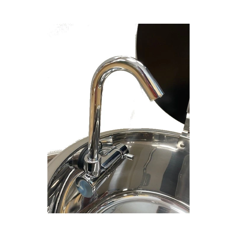 Lavabo/Ă©vier rond avec cuve en inox ø 300 mm dotĂ© d’un couvercle en verre et d’un robinet pour la cuisine des camping-cars, fourgons et bateaux.