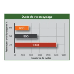 – Autonomie de + 300 cycles en comparaison d’une batterie AGM ancienne génération
