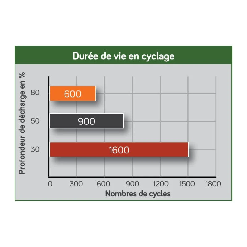 – Autonomie de + 300 cycles en comparaison au batterie AGM classique