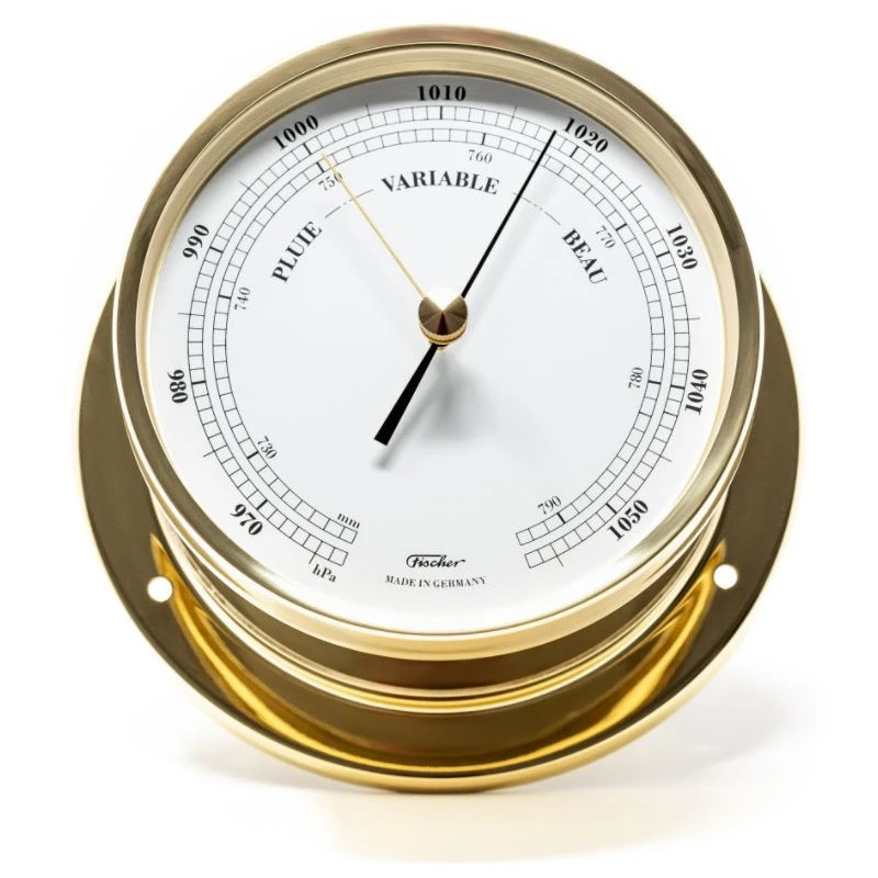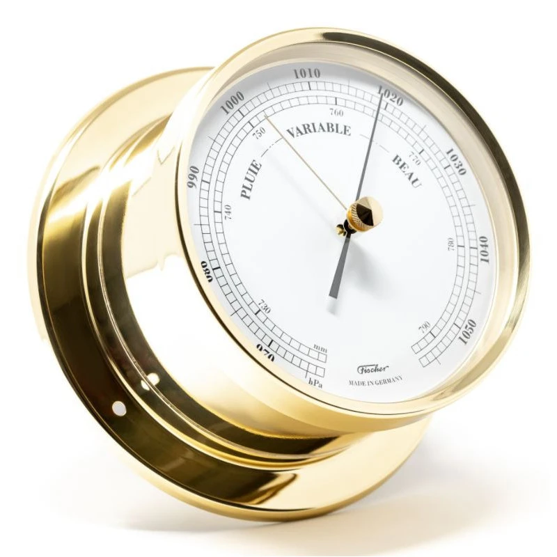 Baromètre en laiton poli ou chromé ø 165 mm (base) de FISCHER conçu pour l’équipement des bateaux ou de la maison !