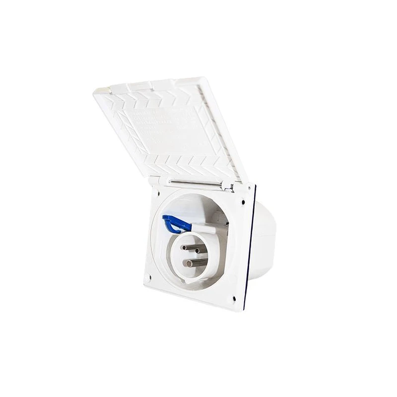 Caractéristique de la prise socle mâle P17 à encastrer pour connexion électrique du bateau et camping-car :