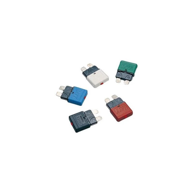 Fusible plat enfichable automatique : dotĂ© d’un disjoncteur thermique rĂ©armable idĂ©al pour les circuits Ă©lectriques 12/24 V des bateaux ou camping-cars, vendu par boite de 5 fusibles type automobile rĂ©armable.