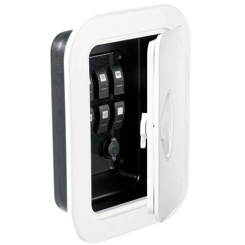 Coffre encastrable NUOVA RADE pour tableau Ă©lectrique 12V, permet d’installer votre Ă©quipement Ă l’abris des projections d’eau en bateau & fourgon amĂ©nagĂ©.