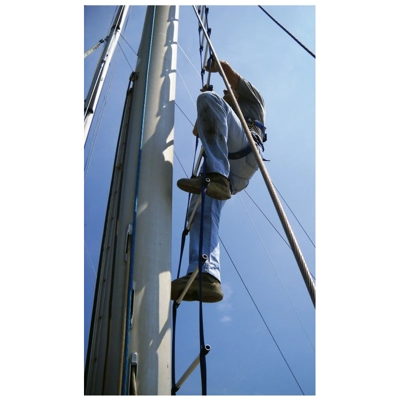 Echelle d’ascension au mât OSCULATI en textile et aluminium Ă hisser avec une drisse en haut du mât du bateau voilier.