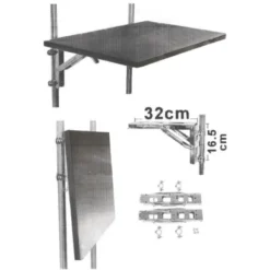 Accessoire robuste fabrication inox polie miroir pour conception de table et plan de travail repliable dans le bateau camping-car et fourgon aménagé, cette solide équerre pouvant supporter une charge de 150 Kg se replie d’une simple pression de la main, équerre très robuste idéal pour l’aménagement et conception de cuisine en intérieur et extérieur.