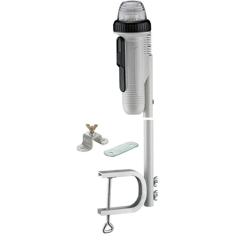 Feu de navigation à Led pour bateau tout horizon. Equipement fonctionnement sur pile éclairage blanc à 360°. deux modèles aux choix : fixation ventouse ou avec clip pour tube.