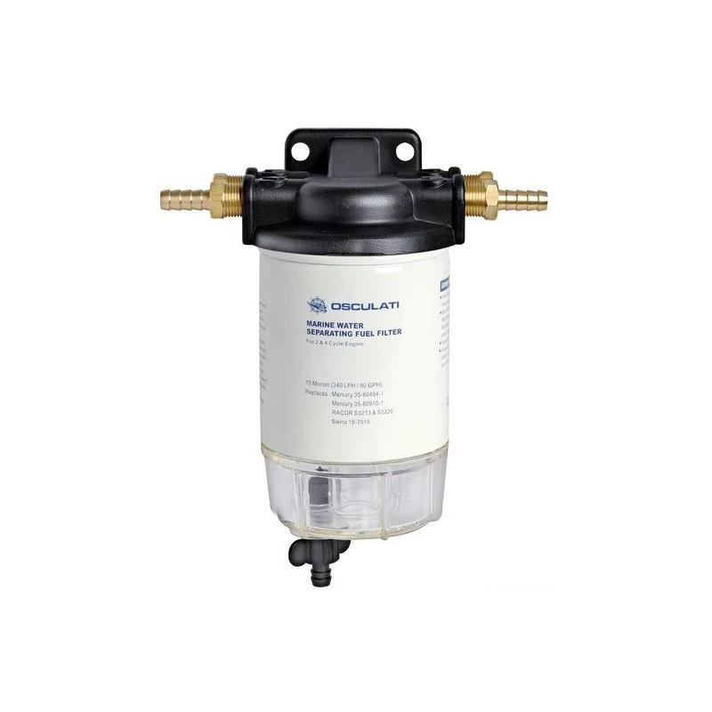Vous pouvez faire confiance au spécialiste italien du nautisme pour votre moteur hors-bord, OSCULTI propose ici à tout petit prix promotion sont filtre séparateur eau / carburant avec cartouche interchangeable 10 microns.