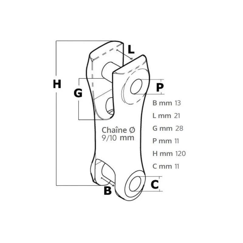 Caractéristiques de la manille double axe pour jonction ancre chaîne :