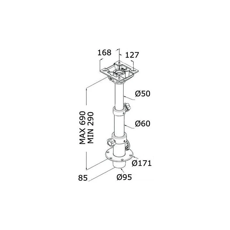 A la fois robuste et pratique, ce pied aluminium OSCULATI s’encastre dans le plancher du bateau ou du fourgon aménagé et offre un déploiement en 3 parties allant de 290 à 690 mm.