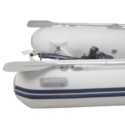 Ce nouveau système est très solide : deux charnières en inox avec système de verrouillage à vis papillons et joint d’étanchéité. Avec sa coque rigide en V, cette annexe de bateau possède de très bonne qualité de navigation et peut recevoir un moteur hors-bord de 6,5 cv maximum.