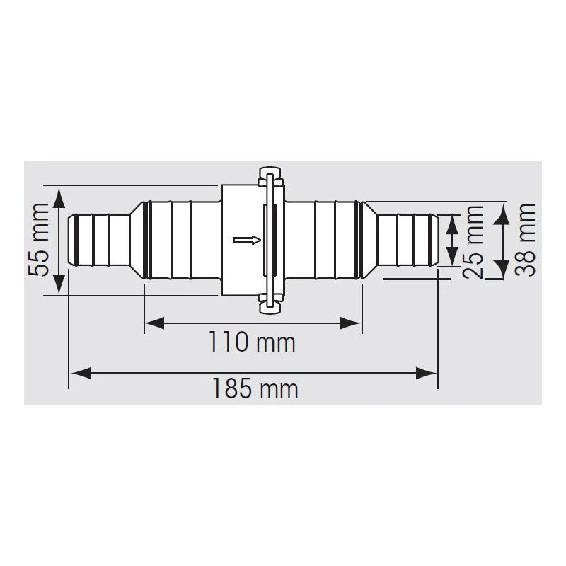 Selon votre installation, le clapet anti-retour PLASTIMO peut ĂŞtre utiliser pour du tuyau de ø 25 mm ou ø 38 mm. Il suffit de dĂ©couper l’embout de 25 mm pour l’utiliser en 38 mm (une gorge est prĂ©vue pour facilitĂ© le dĂ©coupage).