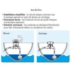 A noter, pour le modèle avec By-Pass installĂ©e sur le circuit d’une pompe Ă©lectrique, la pompe de cale Ă©lectrique doit ĂŞtre de type centrifuge ; PLASTIMO dĂ©conseille l’installation avec une pompe Ă membrane ou Ă ailettes.