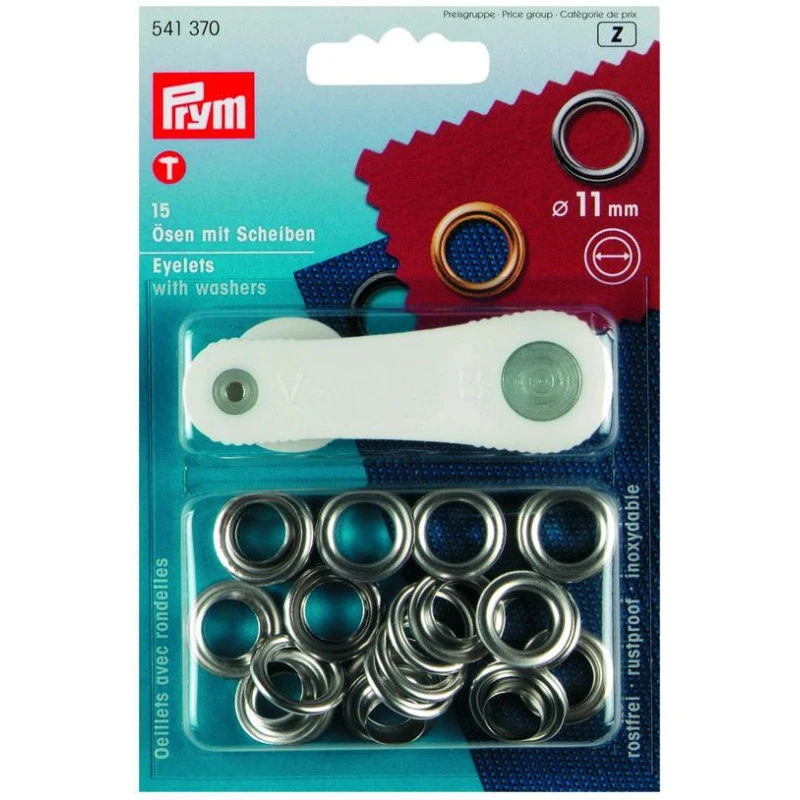 PRYM oeillets sous blister de 15 pièces avec outil de fixation inclus, idéal pour bâche, taud et rideau des bateaux et camping-cars.
