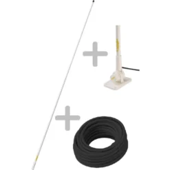 Antenne en fibre de verre type fouet de 1,4 m de long pour un gain de 3 dB, livré avec support de fixation plat-pont pour bateau moteur.