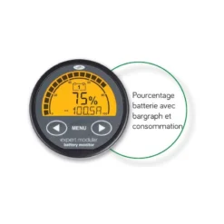 Equipement pour camping-car et bateau de haute qualité, le Expert Modular vous permet de tout savoir de vos batteries afin de gérer votre électricité : tension, consommation, recharge des batteries, Ah restants, autonomie… Bref en un coup d’oeil vous avez toutes vos informations indispensables ! Le gros point fort de ce gestionnaire de batterie 12V est surtout son installation ultra-simplifiée : livré avec un shunt (capteur) qui se connecte à l’afficheur avec des câbles RJ faciles à connecter, n’importe qui peut installer ce produit.