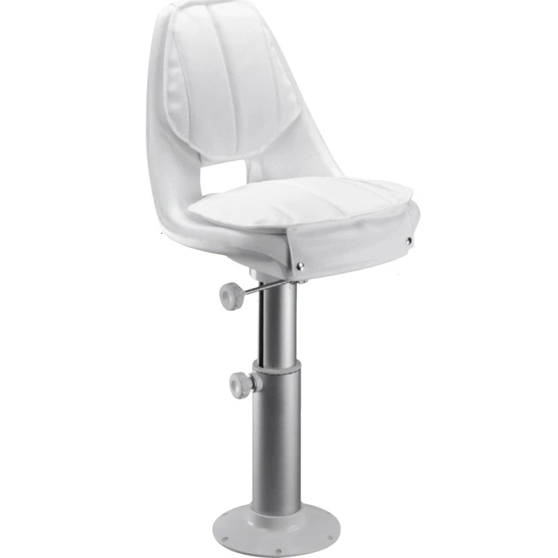 Parfait pour un ré-équipement à neuf de votre bateau, ce kit complet est prêt à l’installation et vous permettra de changer rapidement et simplement les sièges pilotes et passagers du bateau. Pour les vedettes de pêche, coque-open ou semi-rigides cet ensemble convient pour un grand nombre d’embarcations. Le siège avec coque en polyéthylène est monté sur pivot, le pied est en aluminium anodisé et est télescopique offrant une assise de 510 à 730 mm.