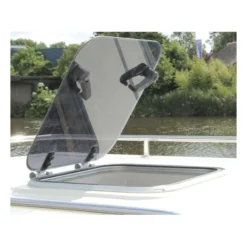 Ce panneau de pont peut être fermé en 2 positions : ouvert afin de laisser passer un filet d’air ou fermé & complètement étanche. L’ouvrant peut ensuite s’ouvrir & se régler de manière continu grâce au système de charnières.