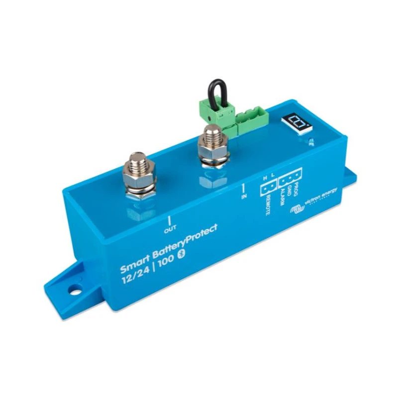 VICTRON apporte une solution technique a cette problématique de gestion d’énergie, avec le Smart Battery Protect 100 A. Une véritable protection basse tension qui permettra de déconnecter le parc en batterie en cas de tension trop basse. Ainsi vous pourrez préservez vos batteries AGM & GEL, & éviter la déconnexion du BMS sur les batterie Lithium.
