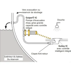 Système de bonde avec contacteur pour déclanchement automatique de la pompe de vidange WHALE Gulper IC, système parfait pour la douche du bateau ou du véhicule aménagé ne pouvant évacuer ses eaux en gravitaire.