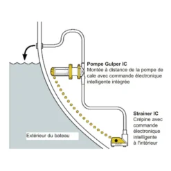 Système de crépine avec capteur de niveau intégré idéal pour installation simplifié de la pompe de cale du bateau, compatible uniquement avec la pompe a membrane toute eau WHALE Gulper IC.