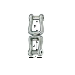 | Longueur mm | Dimension A mm | Dimension B mm | Dimension C mm | Ø Axe mm | Charge de travail Kg | Charge de rupture Kg |