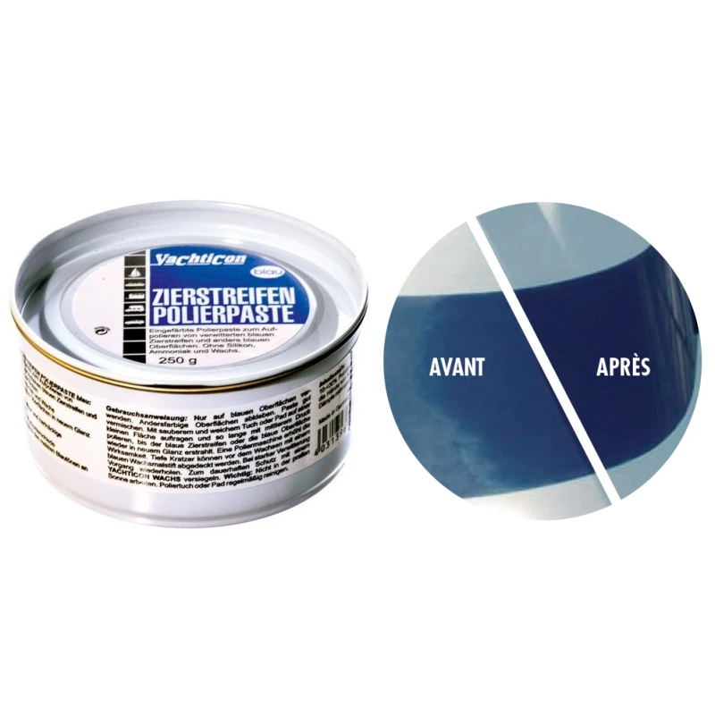 YACHTICON Polish bleu est le meilleur moyen de polisher et raviver la couleur sur coque de bateau bleue, un accessoire d’entretien bateau idĂ©al!